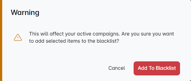 This will pop up if you have active campaigns and Marketing Monk will also blacklist the leads that are in these campaigns. So we are just warning you to make sure that you don't make a mistake.
