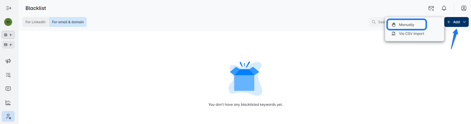 Using a manual approach can come in handy when there are only a couple of emails or company domains you want to blacklist.