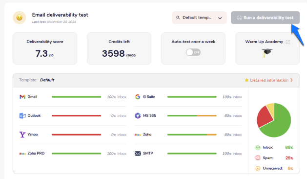 Go to your InboxFlare account, and select the email you want to inspect. Then, scroll down to the Email deliverability test, and run it.