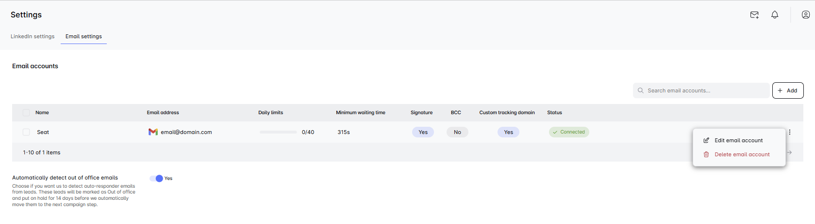 💡 Pro tip: If your email accounts aren’t warmed up yet, it’s best to remove them from the campaign for now and wait until they’re fully ready for outreach.